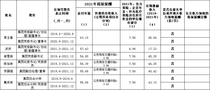 关于企业负责人2021年度薪酬和2019-2021年任期激励信息披露的公告