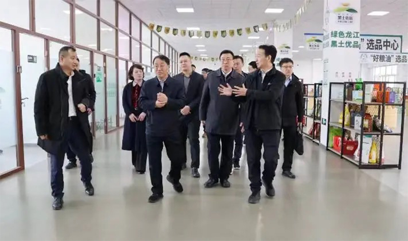 调研中,刘海城一行参观了农投数字农业产业园“黑土优品”展厅与“黑龙江好粮油”展厅,详细了解了园区发展历程、产业布局以及企业运营等情况,并对园区的发展成果给予了充分肯定。李国强对省商务厅一行表示欢迎,并对农投集团基本情况进行了简要介绍。