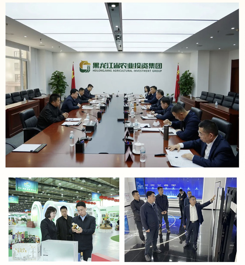 常玉春对侍明旭一行的到来表示欢迎,并简要介绍了农投集团主责主业功能定位和“六大板块”运行情况。他表示,作为黑龙江省农业产业投融资服务和对外合作承载平台,农投集团紧紧围绕“四个农业”建设,深入贯彻落实省委省政府关于扩大“黑土优品”营销渠道、加大品牌农业建设力度的部署要求,积极宣传建设公共品牌“黑土优品”,推动“黑土优品”进央企、进高校,进一步拓展品牌市场影响力,实现多方共赢。希望双方以此次为契机,携手并进,发挥各自优势,在“高标准农田建设”“黑土优品”“鲜食玉米”等领域深入合作,共同引领龙江农业创新高质量发展。