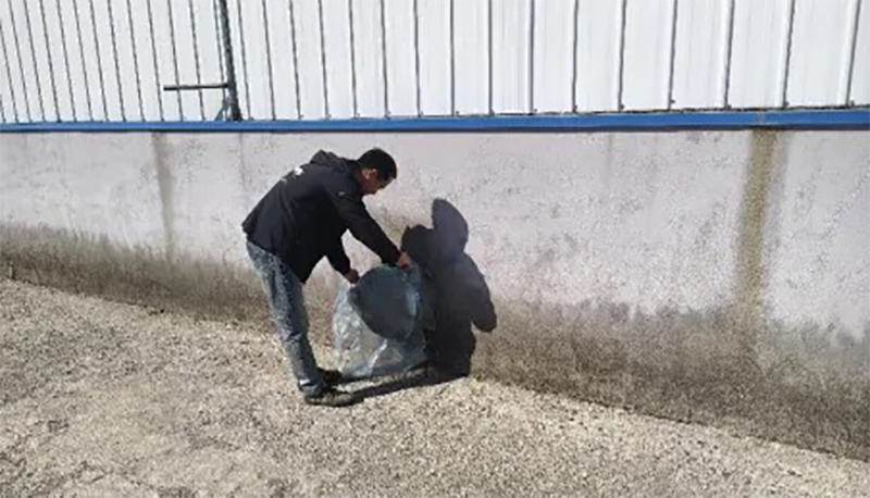 同江市江都粮库保管员在对风机进行遮盖,防止雨水倒灌