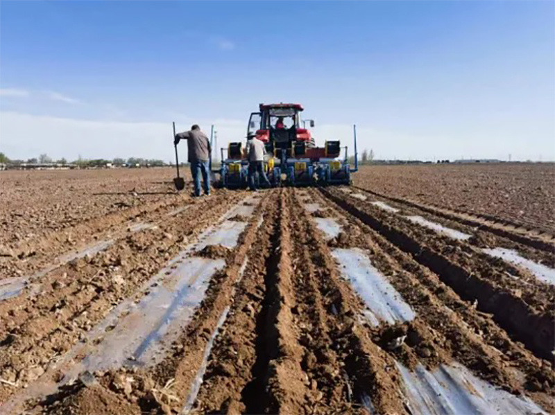 新疆繁育技术人员检查繁育播种是否有漏播情况