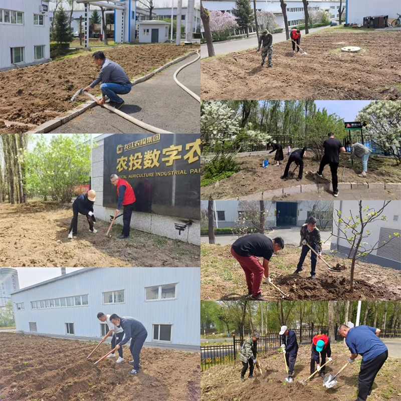 “植树增绿 共建美丽园区”主题活动现场,产业园全体员工齐心协力、相互配合,挥锹铲土、扶苗浇水,共同种下了象征希望与生机的树苗。干部员工纷纷表示,要为打造美丽园区、绿色农投贡献自己的一份力量。