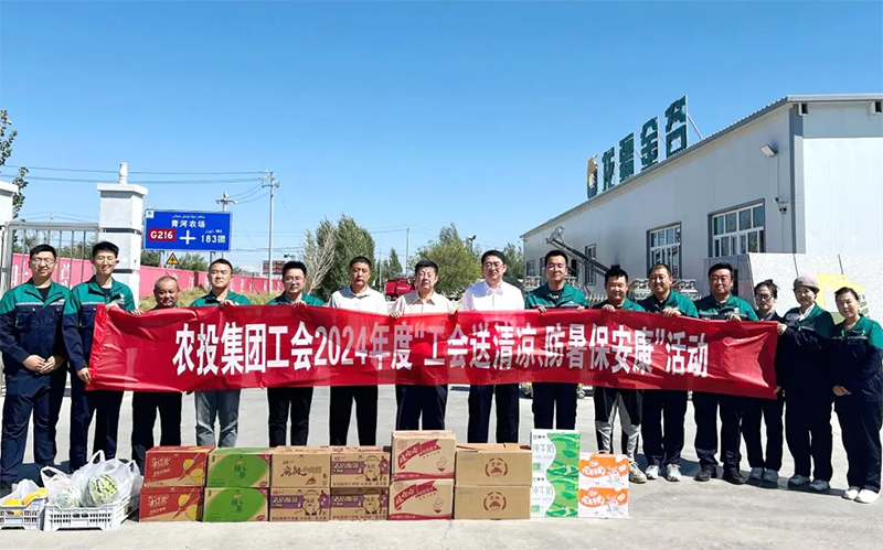 近日,农投集团专职外部董事郭显利、刘博一行深入新疆龙疆金谷公司调研指导,并代表集团工会开展“工会送清凉·防暑保安康”慰问活动。农投产融党委书记、董事长任关宇陪同调研。