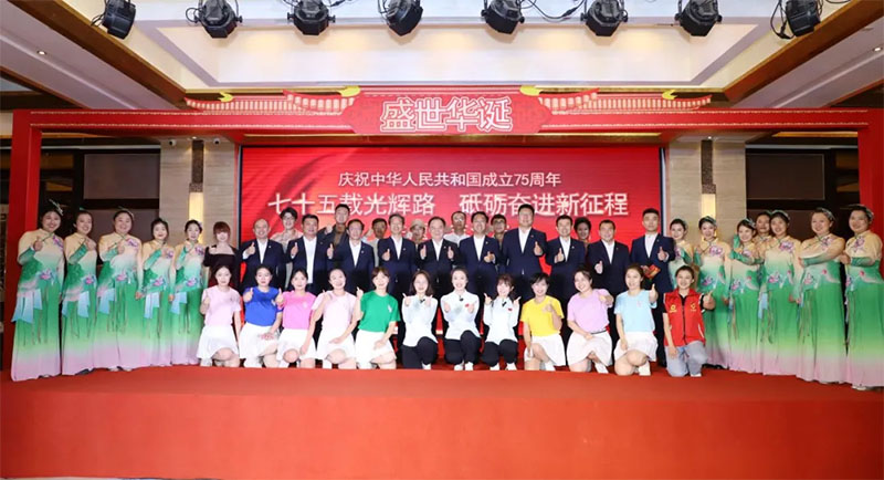 农投集团党委书记、董事长常玉春在致辞中表示,集团全体党员干部员工要以庆祝中华人民共和国成立75周年为契机,更加紧密地团结在以习近平同志为核心的党中央周围,高举中国特色社会主义伟大旗帜,坚持不懈用党的创新理论凝心铸魂,忠诚捍卫“两个确立”、坚决做到“两个维护”,争当崇高理想信念的追求者、走在时代前列的奋进者、功成不必在我的奉献者,为建设农业强省、农业强国贡献农投力量,为实现中华民族伟大复兴的中国梦而不懈奋斗。