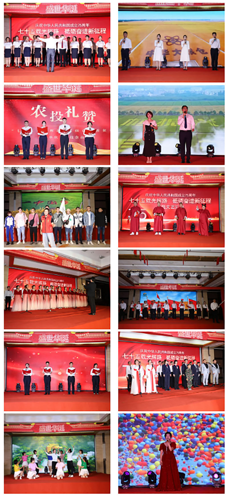 为庆祝中华人民共和国成立75周年,培养党员干部爱国主义意识、民族责任,9月29日,农投集团在金谷大厦举办庆祝中华人民共和国成立75周年“七十五载光辉路 砥砺奋进新征程”主题文艺汇演。