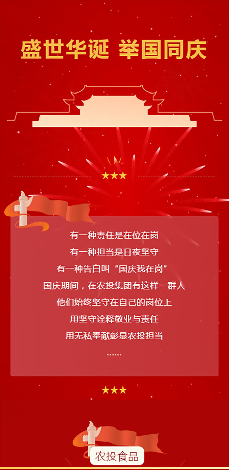国庆期间,黑龙江省农投食品集团有限公司广大干部员工争分夺秒,奋战在生产经营一线,从办公区到生产车间,处处洋溢着祥和有序的工作氛围,他们在平凡岗位上默默耕耘,在各个角落里发光发热,用实际行动诠释着“节日我在岗,工作不松劲”的奉献精神,用始终如一的坚守,诠释国资国企担当,用拼搏奋斗的身姿,书写公司发展精彩答卷。