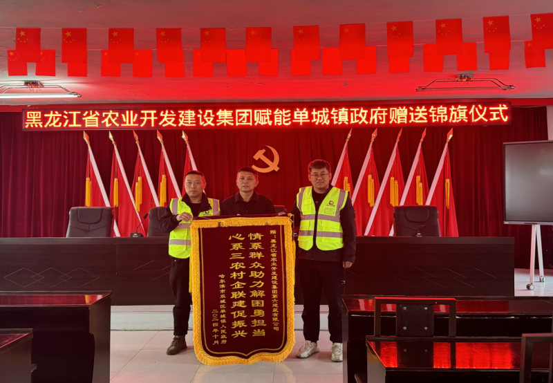 2024年10月30日,哈尔滨市双城区单城镇人民政府为项目部送上一面印有“情系群众助力解困勇担当 心系三农村企联建促振兴”字样的锦旗。这面锦旗不仅是对他们助力亚冬会工作的肯定,更是对他们情系乡村发展的认可。项目部用实际行动改善了当地交通条件,为村民的出行和乡村经济发展提供了有力支持,进一步拉近了企业与群众的距离。