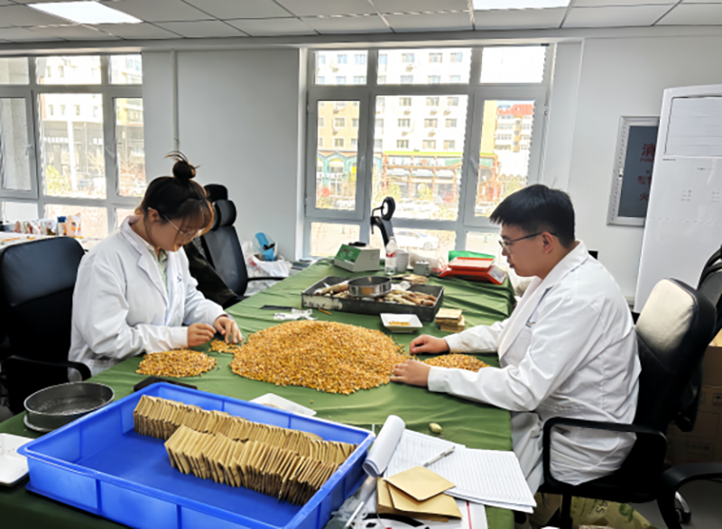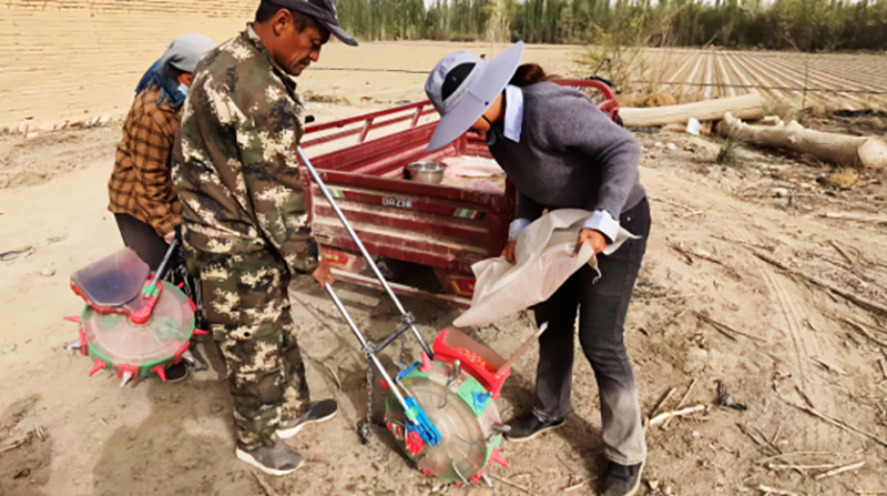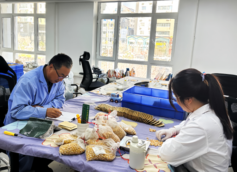 △研发中心研发人员清选参试种子。 △研发中心人员包装玉米种质基础材料。 △研发中心人员进行大豆试验种子分装。 △研发中心人员进行玉米试验种子分装。 △研发中心人员在试验大棚进行水稻材料播种育苗。 △生产中心人员播种前检查播种机种子及化肥情况,确保播种顺利开展。 △生产中心人员在新疆繁育田进行玉米亲本繁育播种。 △营销中心人员走访经销商展示公司产品,了解产品销售情况。