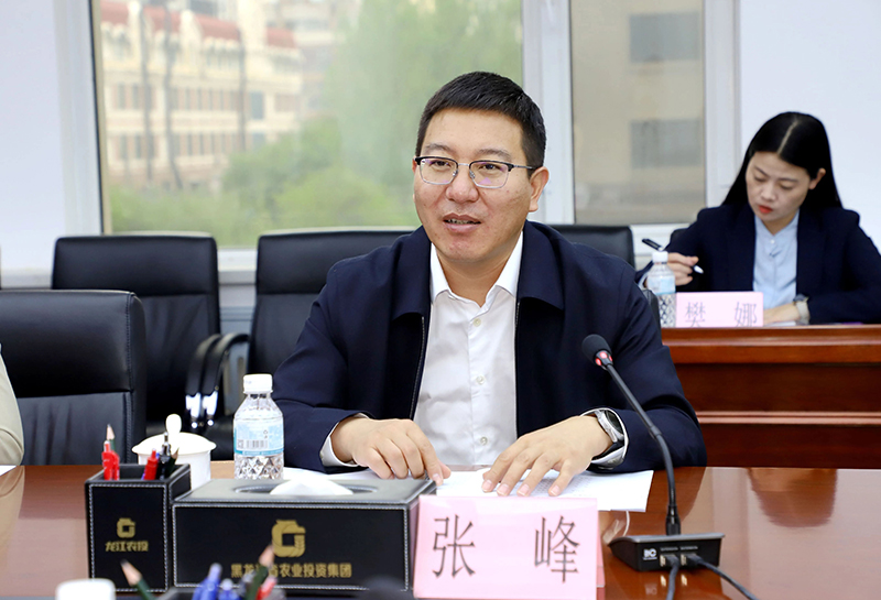 张峰介绍了河南农投的业务布局和战略定位,重点分享了在农业投融资、品牌建设等方面的实践经验。他表示,河南作为全国粮食生产核心区,与黑龙江在农业资源禀赋和产业优势上具有高度互补性。河南农投近年来积极推进“豫农优品”品牌建设,并在农业大数据平台、农产品供应链等领域积累了丰富资源,期待与龙江农投在智慧农业应用、品牌农业建设等方面深化合作,实现资源共享、互利共赢。